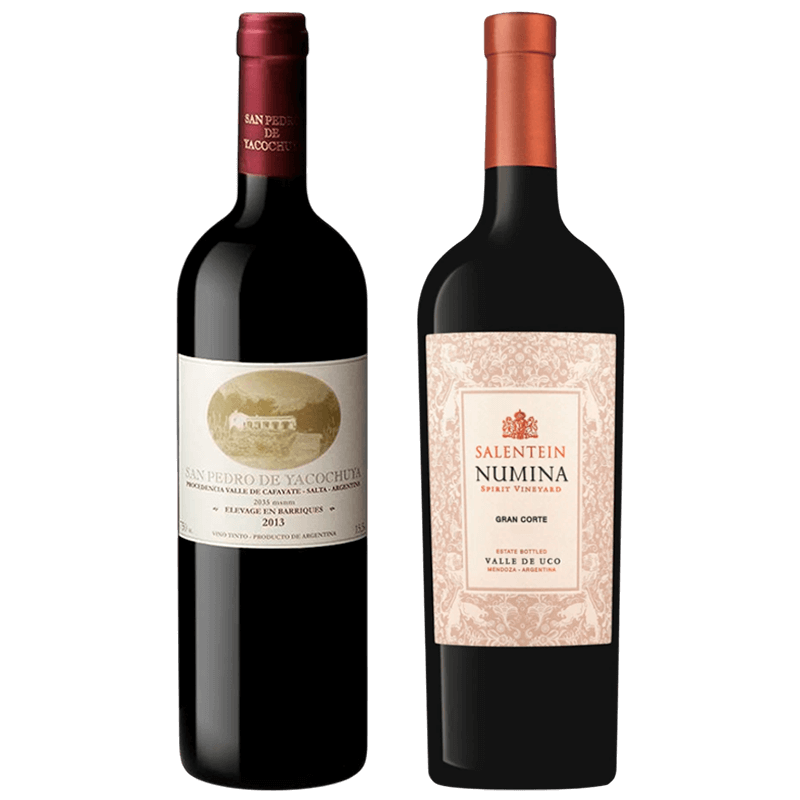 San Pedro de Yacochuya Malbec–Cabernet: Un vino de los Valles Calchaquíes que combina potencia y elegancia. Presenta notas a frutas negras, especias y un sutil toque ahumado del roble, con taninos firmes y un final prolongado.